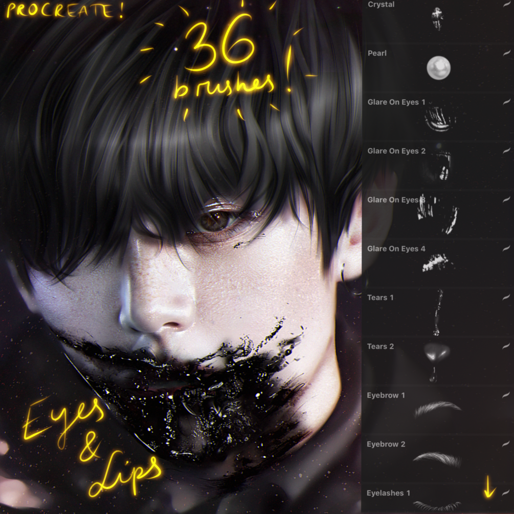 Iris, Pores under eyes, Crystal, Pearl, Glare on eyes, Tears, Eyebrows, Eyelashes,Pore for face, Skin texture under eyes,Veins, Glare on lips, Pores under lips.